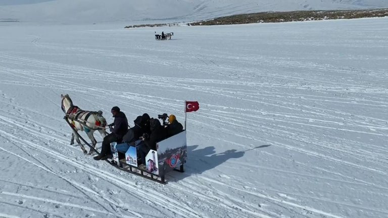 Çıldır Gölü’nde atlı kızak gezintisi